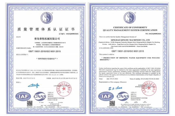 青島青牧機(jī)械有限公司成立于2013年,是一家集研發(fā)、生產(chǎn)、銷售、服務(wù)于一體的綜合性企業(yè)。公司專注于家禽飲水設(shè)備的研發(fā)和生產(chǎn),擁有專業(yè)的研發(fā)團(tuán)隊、先進(jìn)的加工設(shè)備以及自動化組裝線,力求打造“簡單、高效、環(huán)保”的高端禽用飲水系統(tǒng)。
